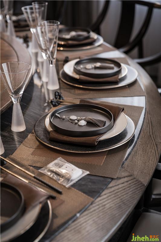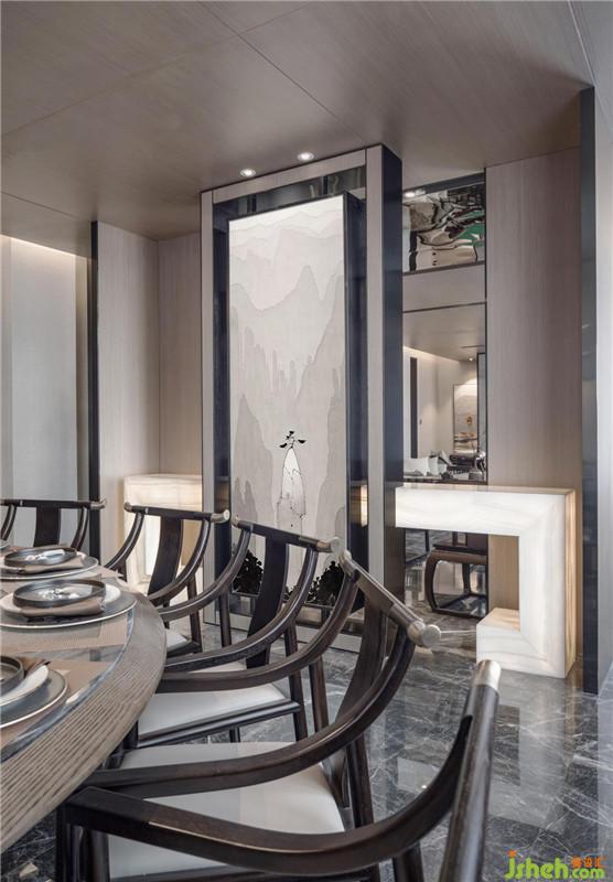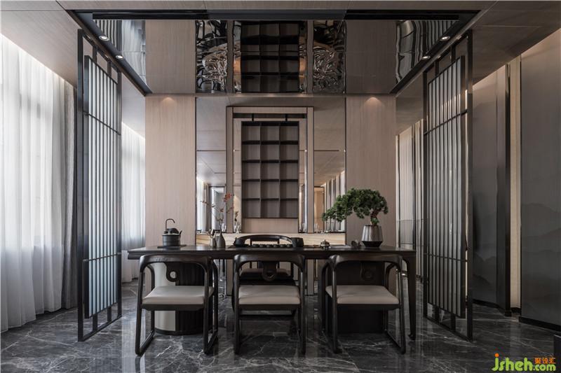 在有限的室内面积,不影响空间整体格调的前提下,舍繁求简。糅合中式空间意蕴及现代设计要素。萃取中式元素中精华部分,运用于每一个空间细节的处理上,提升空间的观感享受及设计价值,江南黛墨质感的呈现,提亮视觉感知。