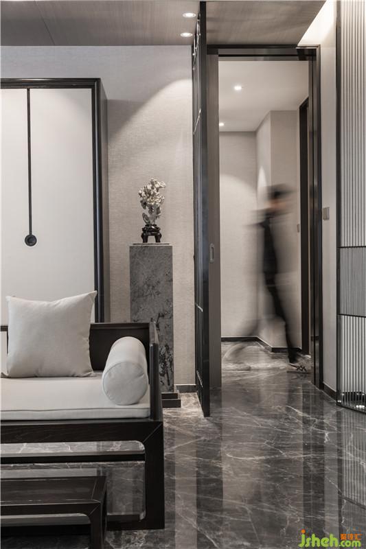 从整个室内空间规划的切分与区隔的尺度着手,把控空间围合度。依托纵横的渐变与转折,突出强调空间装饰。中式设计哲学雅人深致,于光线烘托下呈现出更多的立体和层次感,是江南宜居的空间的体验。