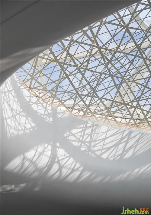 售楼处大堂设计上以此启发灵感,以“竹”之柔韧的特性结合精巧繁复的编织手法,与大堂穹顶相融合,“融于自然景观之中”的概念通过竹编艺术展现的淋漓尽致。同时还让人们重新审视现代手工艺之美,真正做到万物取之自然,回馈于自然。