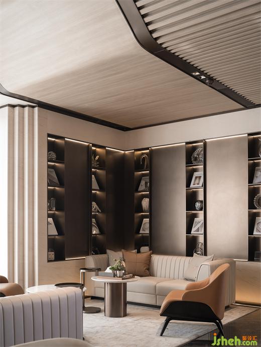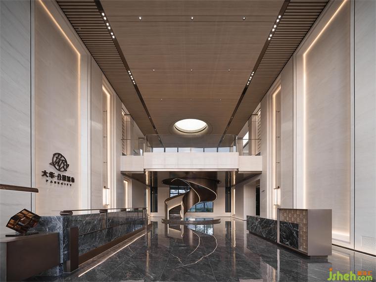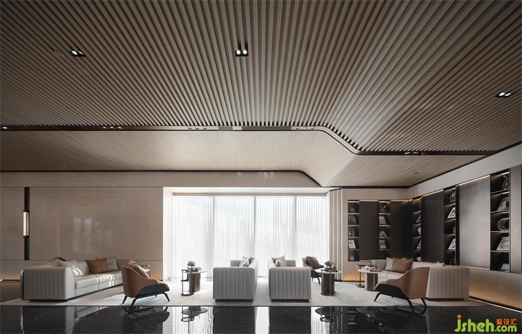 中转厅以雄浑厚重为特色,整体营销中心设计自由而严谨。身临其境,感受光线、肌理和空间结构,每个角度都充满了诗意与画意的美感。