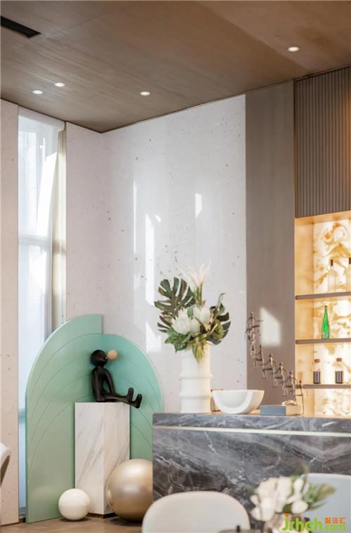 吧台侧面与童趣空间对望,将当代艺术与自然的演变,一袭静谧在心间。