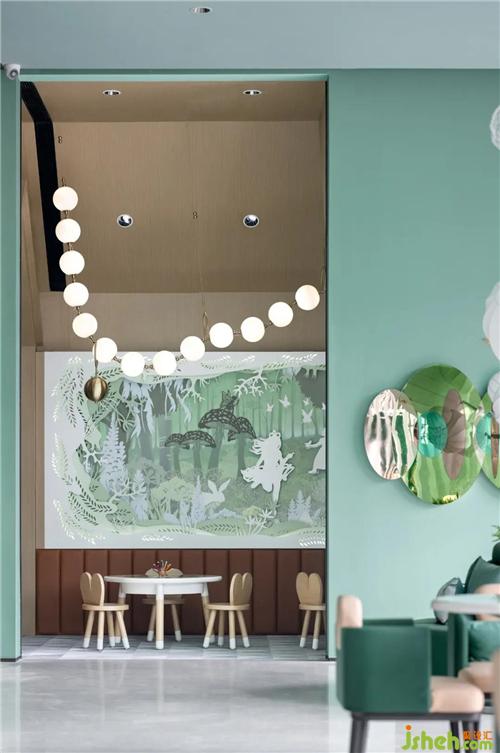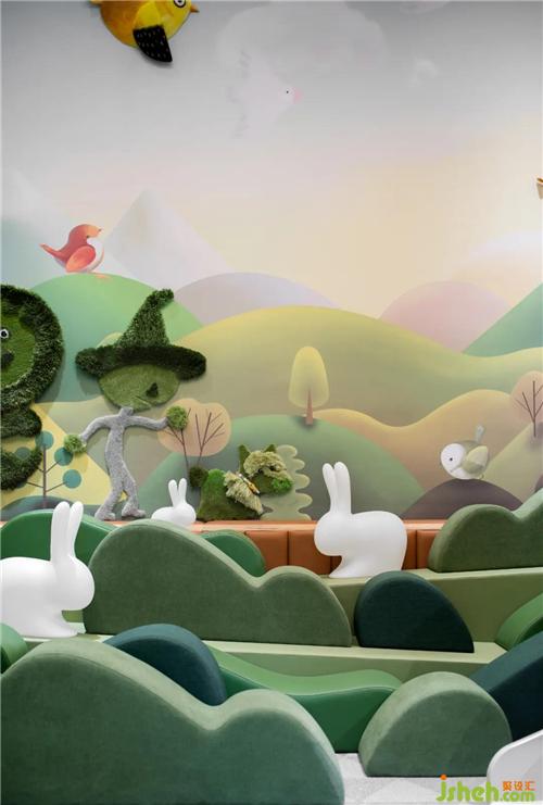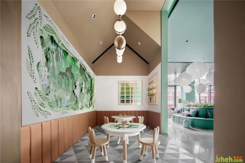 设计提取生态绿意,以温暖的艺术漆结合彩绘的透明装置,为空间增加了灵气、呼应了当地客群对美好生活的憧憬与向往。深圳售楼处设计童话世界从不只属于儿童,更是为城市奋斗打拼一族呈现了追寻的诗与远方。