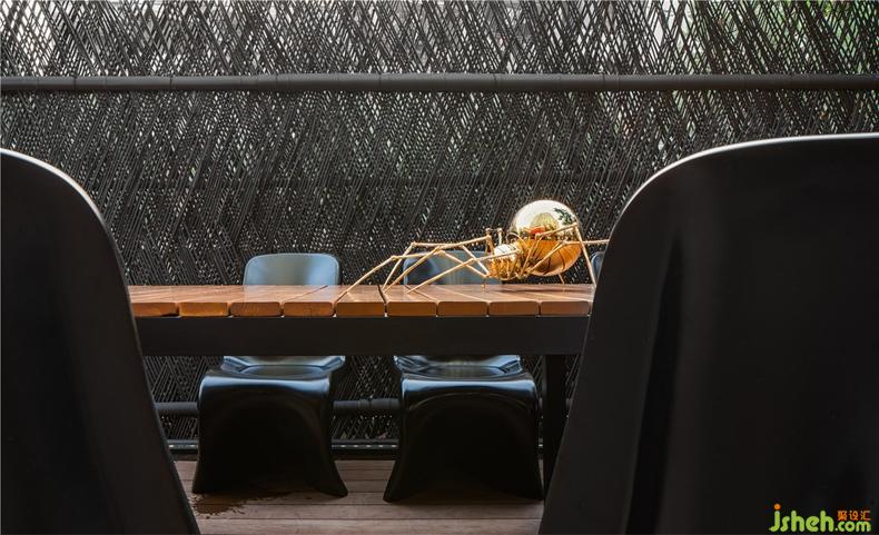 设计师将“慢生活”的主题植入户外,黑色竹篱笆和植物的隔离,时光、趣味、互动、自然赋予阳台的独特魅力,让更多的消费体验者在闹市区有一种室外独享的慢生活时光。