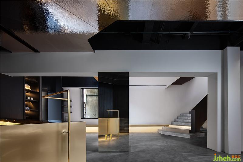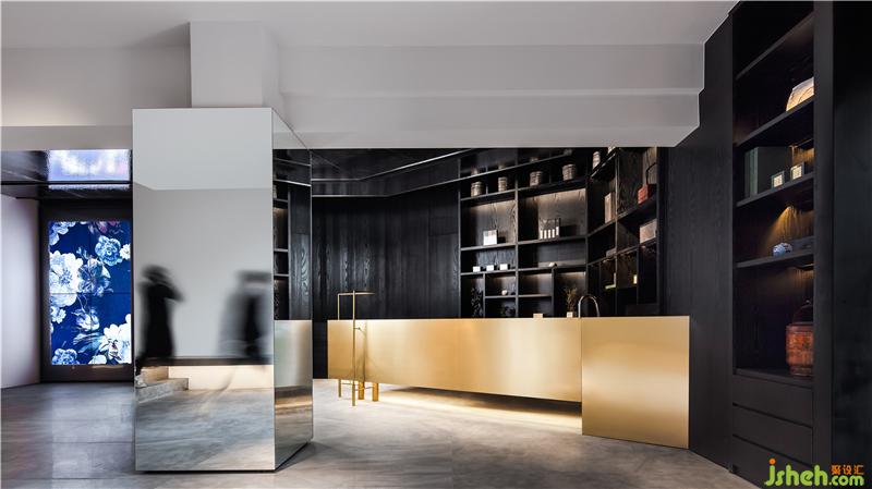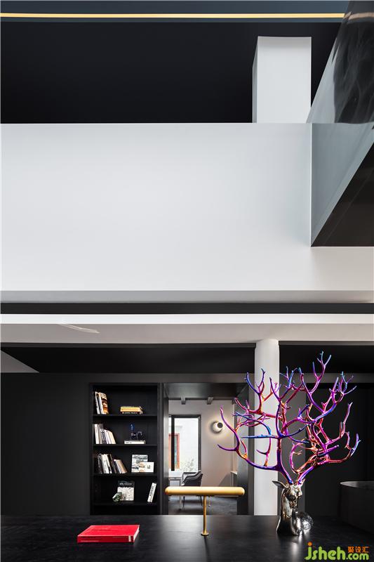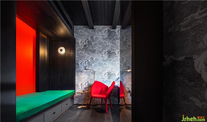 整个区域以黑色打底,其间置入一抹鲜明,如黄色座椅,在光线的辅助下,冲突也和谐。