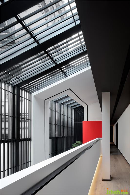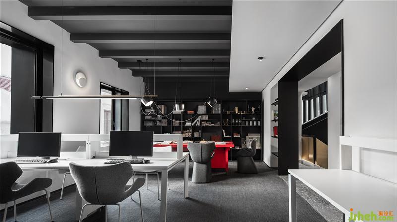 二楼为GID员工办公区,整体空间主要色调为黑白灰, 局部同样运用了不同的颜色进行碰撞,构建别样的东方气韵。