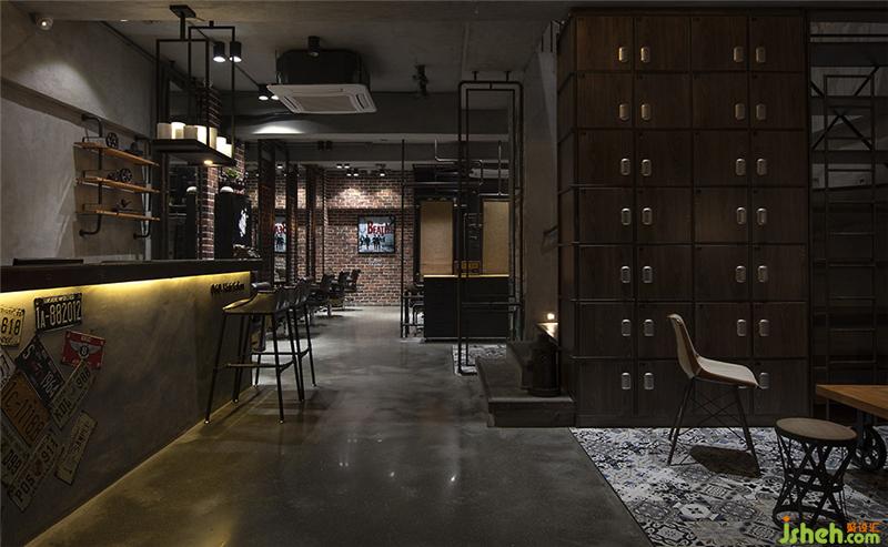 以复古工业作为视觉定义,空间色系以黑、白、灰为主基调,搭配水泥、红砖、旧木等主材,渲染了空间的主题氛围。用砖和水泥来附着墙面,砖与砖的缝隙呈现有别于一般墙面的光影层次,带给室内一种岁月洗涤的粗犷视觉效果,水泥更有一分沉静稳重与现代感。粗犷与稳重;复古与现代,材质的对话极大提升了空间纬度。使用未经打磨的水管、旧木、铁条……这些复古工业的元素经过重新分解,整合,组成带有展示效果又具有实用性的屏风、展示架,使空间更加丰富,具有变化。装修公司