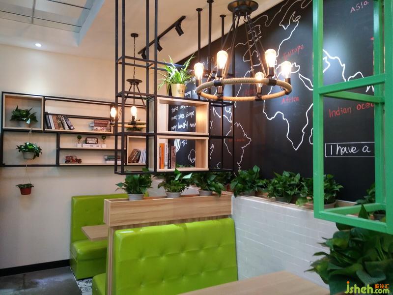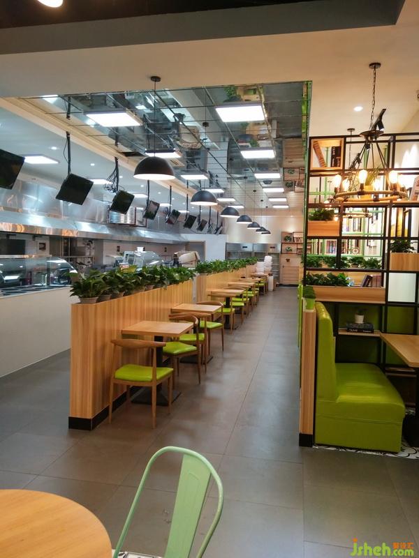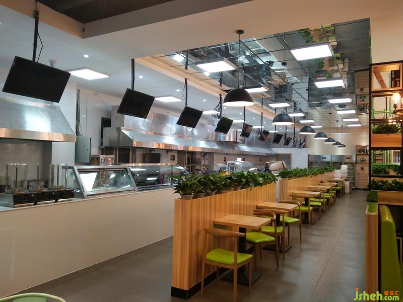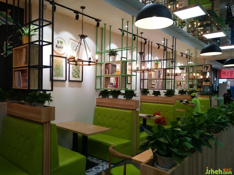 该美食城位于大学生活区,因此整体风格定位现代清新简约风。空间功能划分有就餐区、明档区以及储物间。就餐区分四人散座区、两人散座区、四人雅座区以及吧台区,满足不同就餐需求。布局上采用“一字型”座位形式最大化利用空间。色彩以绿色为主色,烘托年轻、活力、绿意盎然的就餐氛围。
