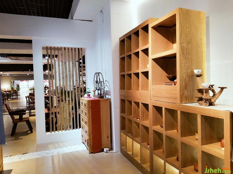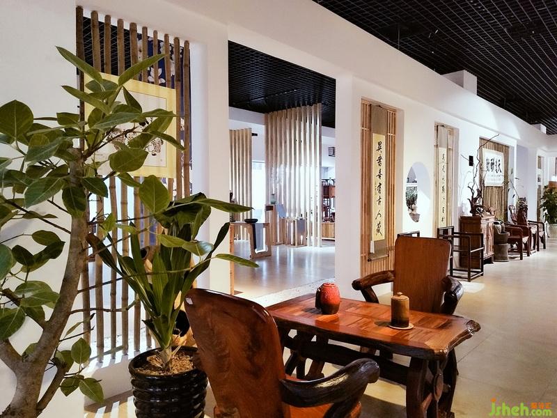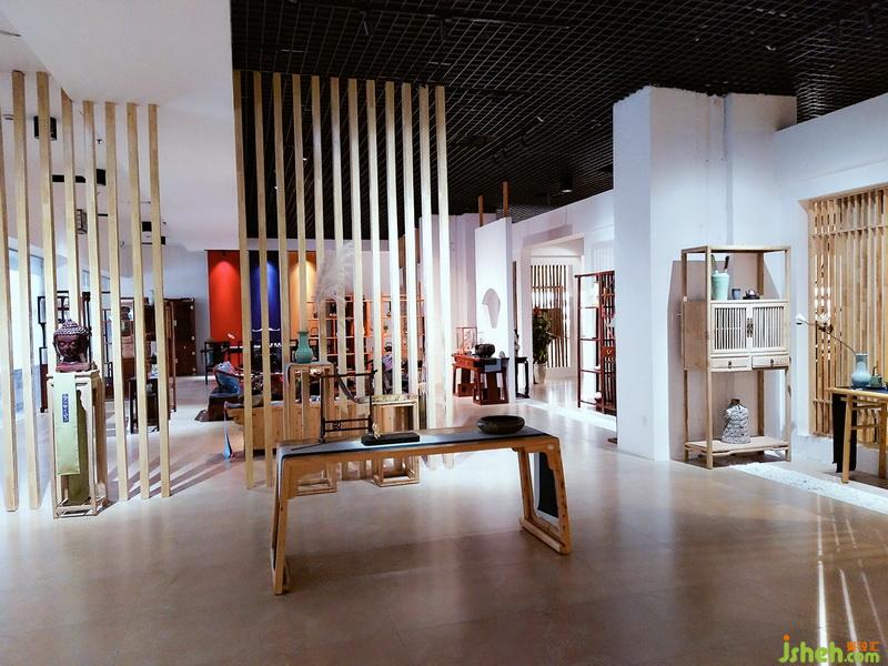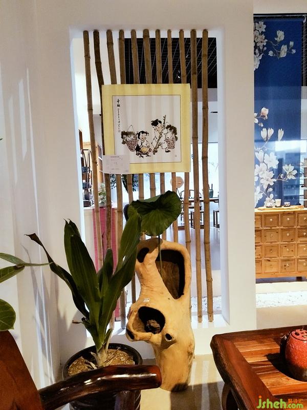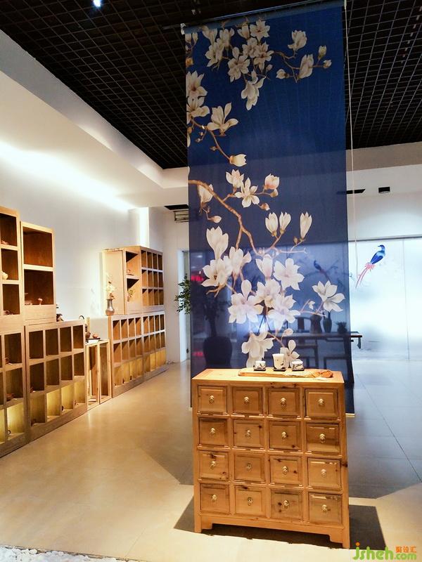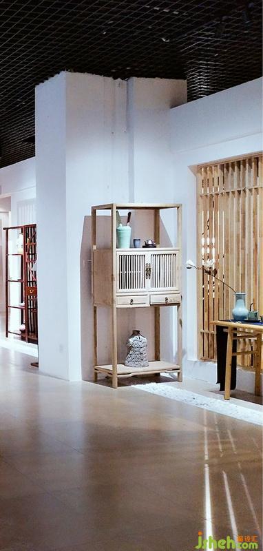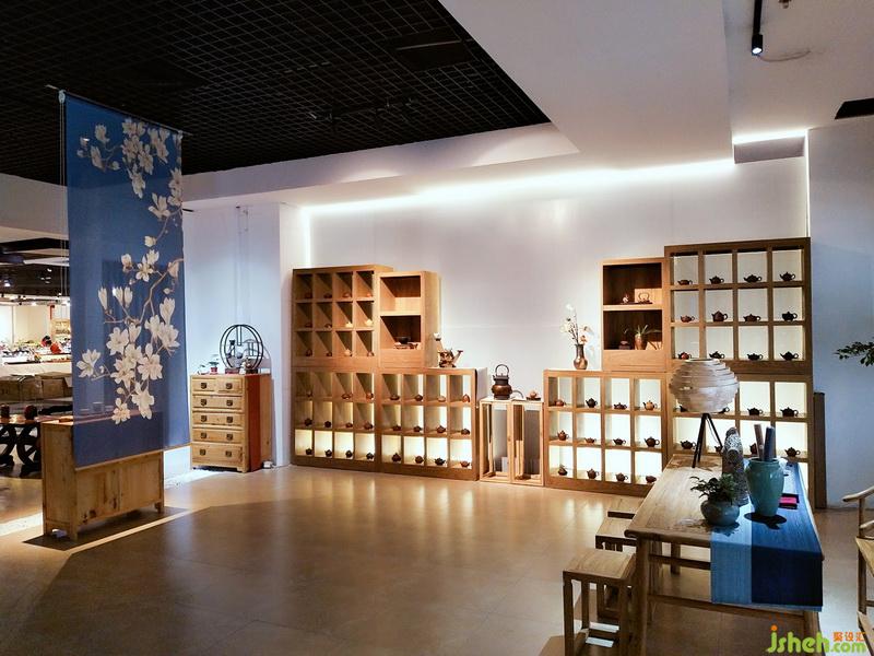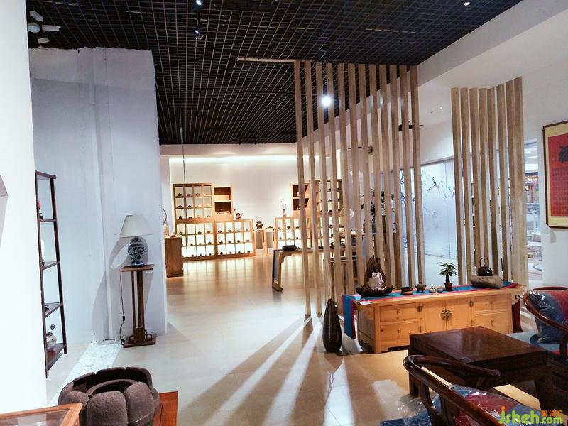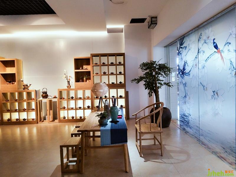空间区域划分为开敞式家具展示区、相对封闭的体验式茶艺区和茶具展示区,区域分割以镂空隔断为主,隔而不断,相互连接,体现静怡、谦和气质。白石子优雅,木格栅朴素,古人云: “宁可食无肉、不可居无竹”,竹子配以禅意风格装饰画、白墙,给人带来一片安逸与禅意。