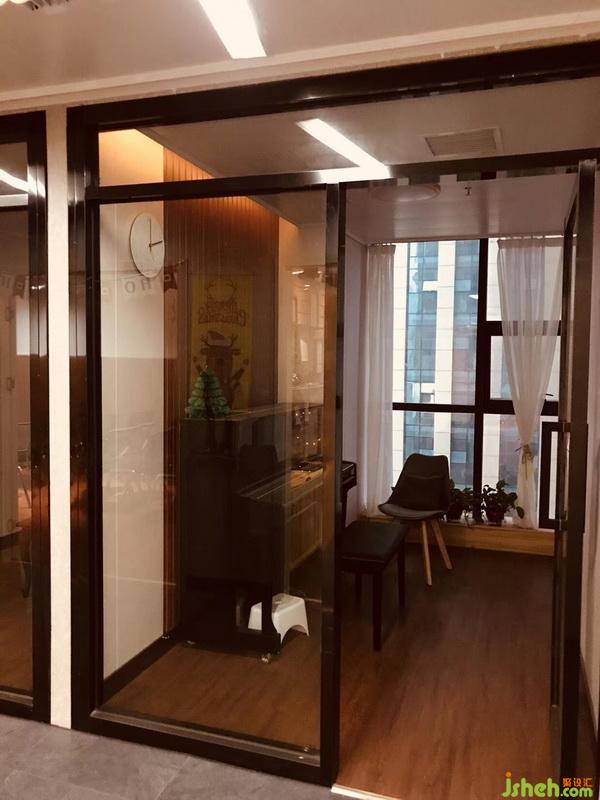 在材料形式处理上,摒弃夸张造型运用和装饰效果为主,靠用吸音板、仿大理石UV板、浅灰色竹木纤维板、玻璃和黑钛不锈钢表现光洁平直精确之美,新颖的美以及材料本身的纹理和质感的美;