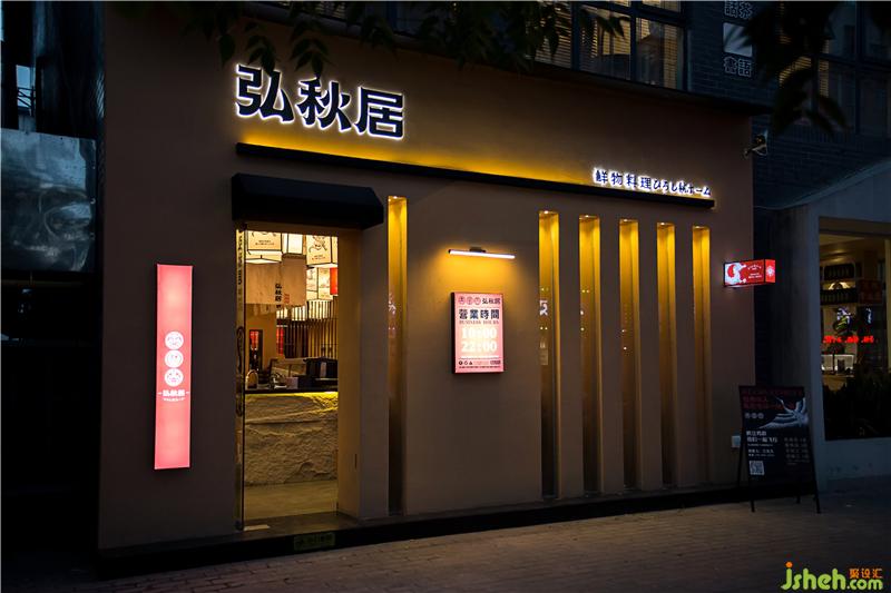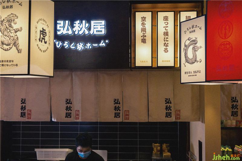 弘秋居日料店位于716创意产业园原创单店餐饮品牌,主营日本料理。本次餐厅设计,店主希望凸显日式潮店的视觉效果和感官享受。既要彰显浓郁的大和文化,又要满足客户“好吃好喝好拍照”的感官消费需求。