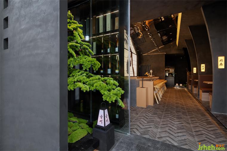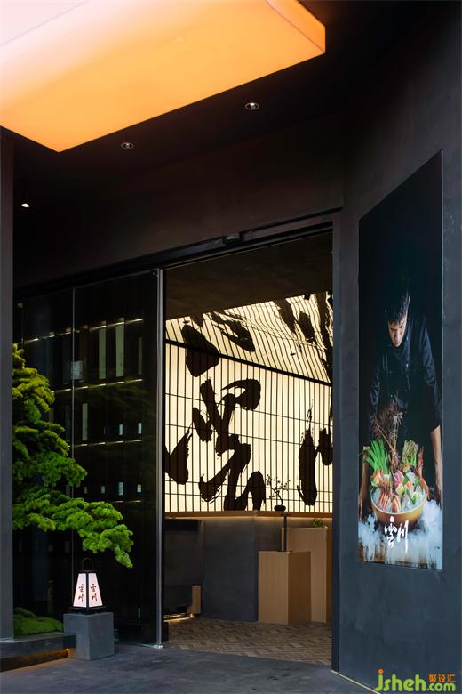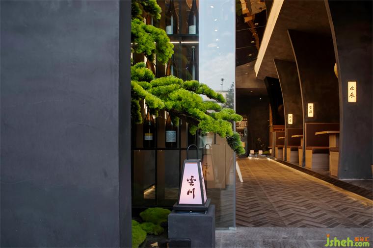雲川门头采用暗色调,门外通过厅内灯火可简单窥探店内小景,自述简约、神秘之感。