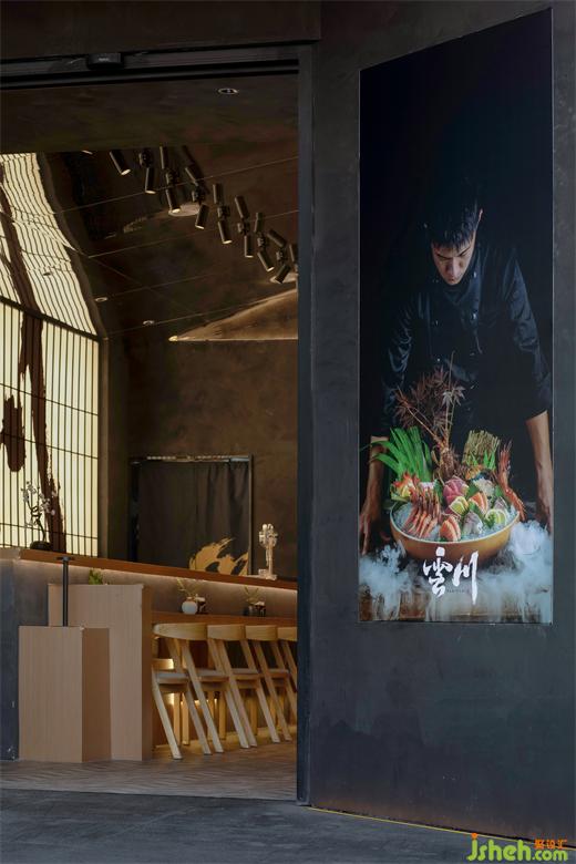 遒劲有力的书法店名,通过“落日”暖调灯箱映衬,料理设计将幽玄、恬静之美表现得淋漓尽致,在营造神秘令人向往的氛围同时,自述此处可是心灵寄托之处。