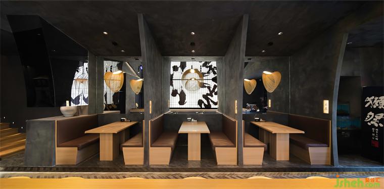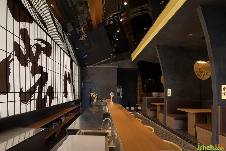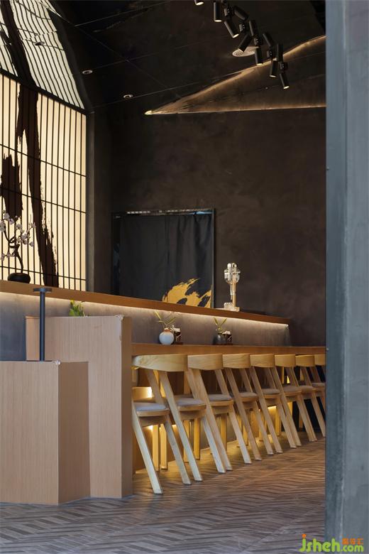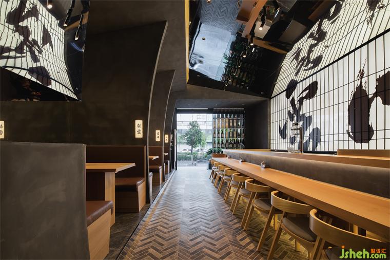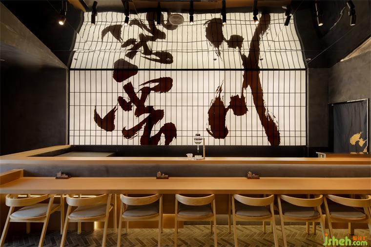 遒劲有力的书法店名,料理设计通过“落日”暖调灯箱映衬,将幽玄、恬静之美表现得淋漓尽致,在营造神秘令人向往的氛围同时,自述此处可是心灵寄托之处。