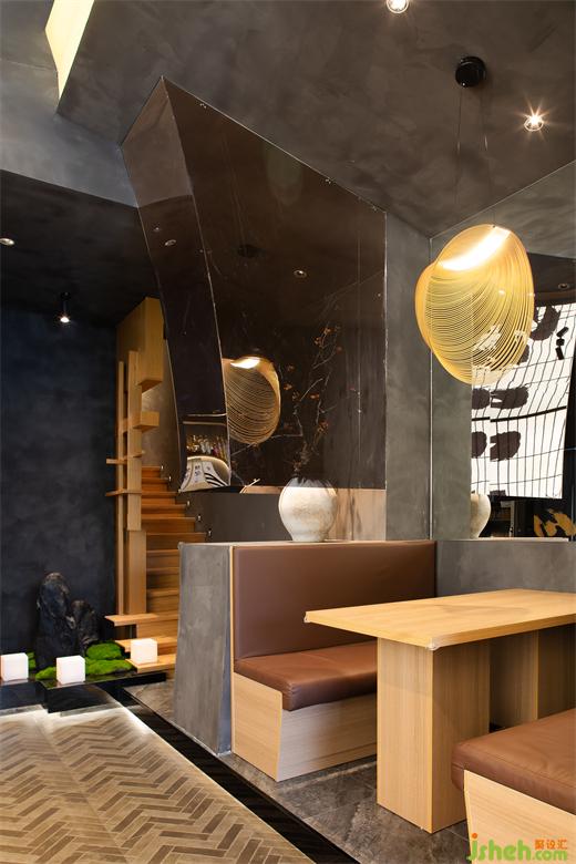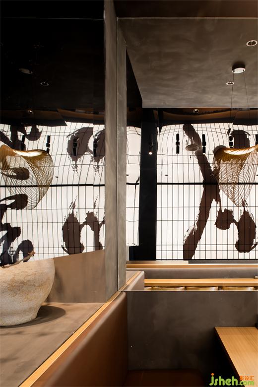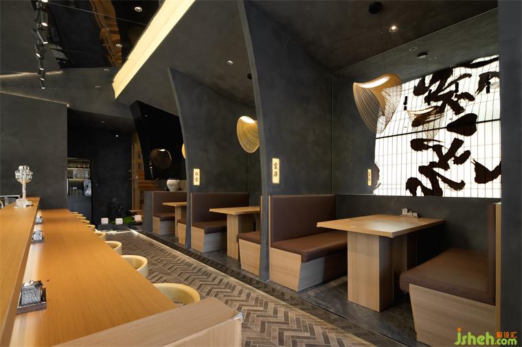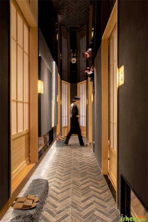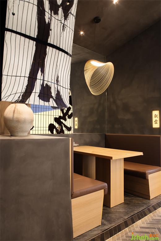 明档处延续门头设计手法,采用毛笔字搭配灯箱设计,灯阁在日本文化寓意着希望、幸福和祈福,与遒劲的雲川字体交织,心向雲端,俯望山川。传统书法与现代日本料理文化相融合,文化中和的趣味令人回味无穷。
