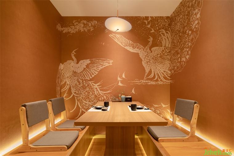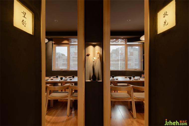 日又名扶光,月又称望舒,日月如流,交相辉映。“扶光”包厢与“望舒”包厢之间,料理设计师做了可拆卸的移门,两个包厢可合二为一,最大化利用空间。