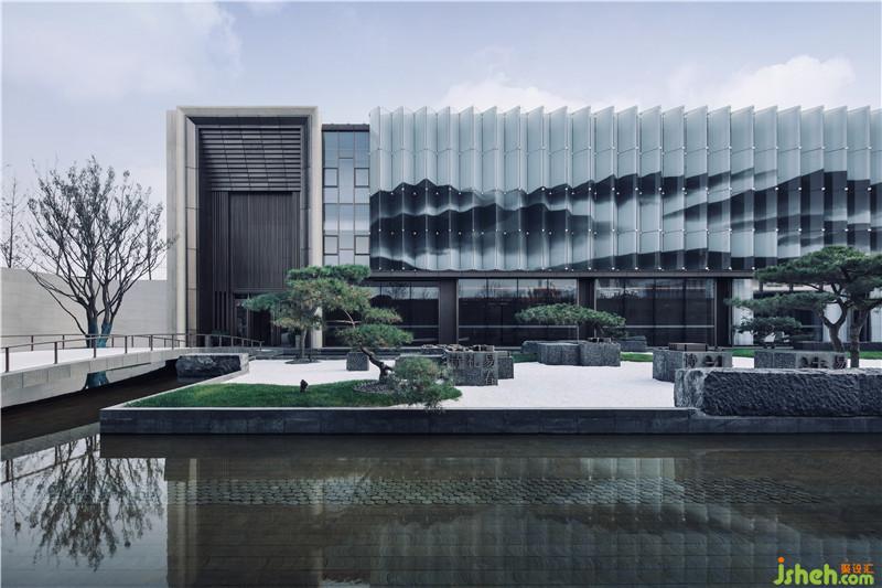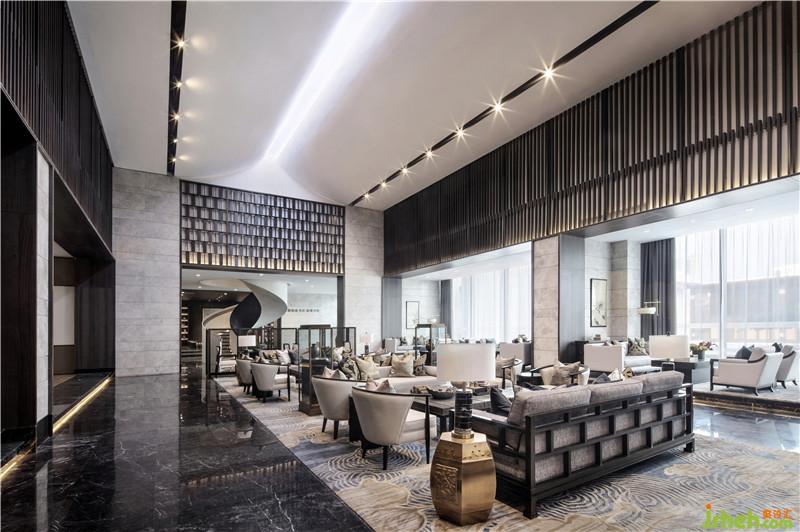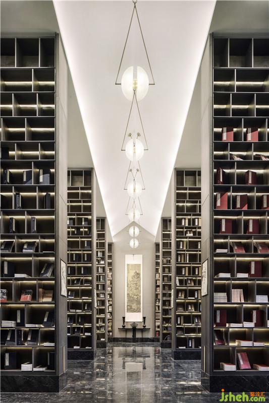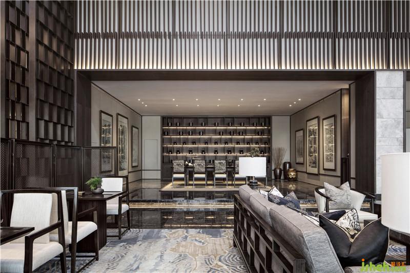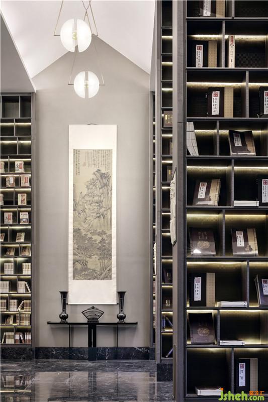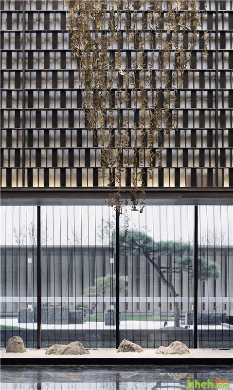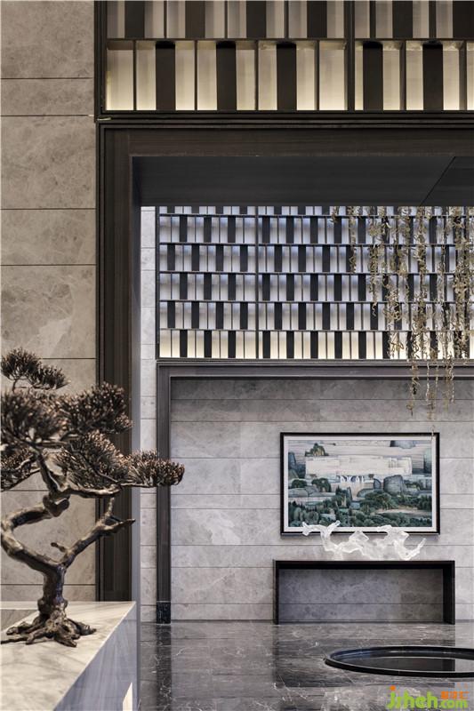 雄伟之气在于追访古韵。接待前厅纵深空间的尽头是装饰有汗青铠甲的背景墙,既延续春秋战国文化,又摆脱青铜器的一味厚重,其上点缀山石造型,硬朗大气中透露出现代主义的自然流畅。