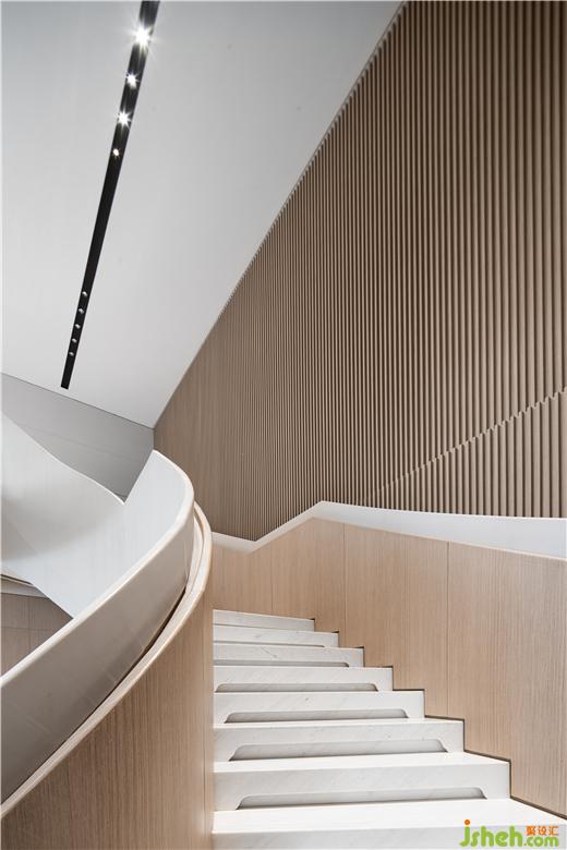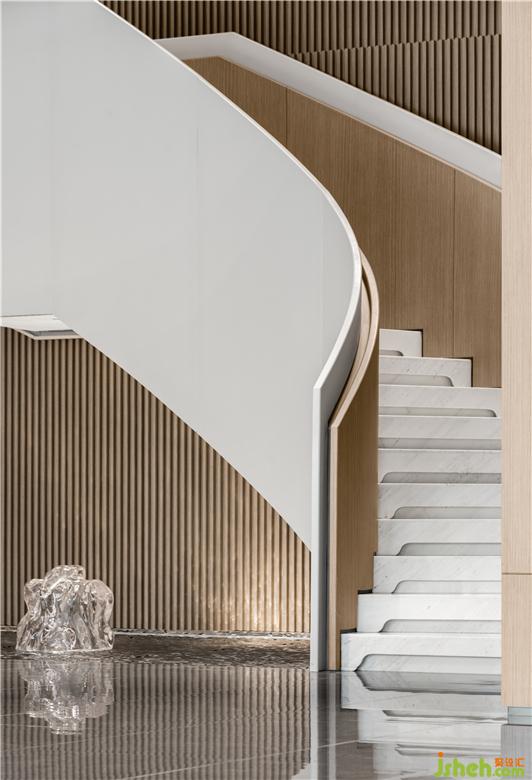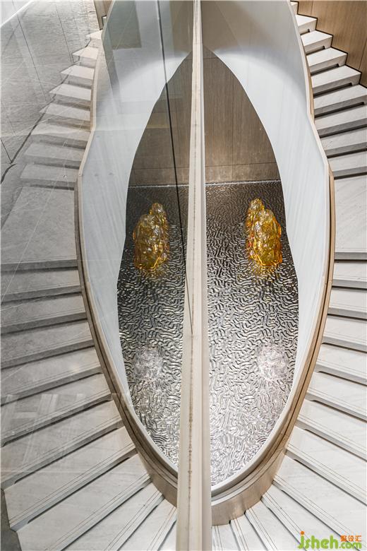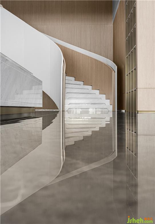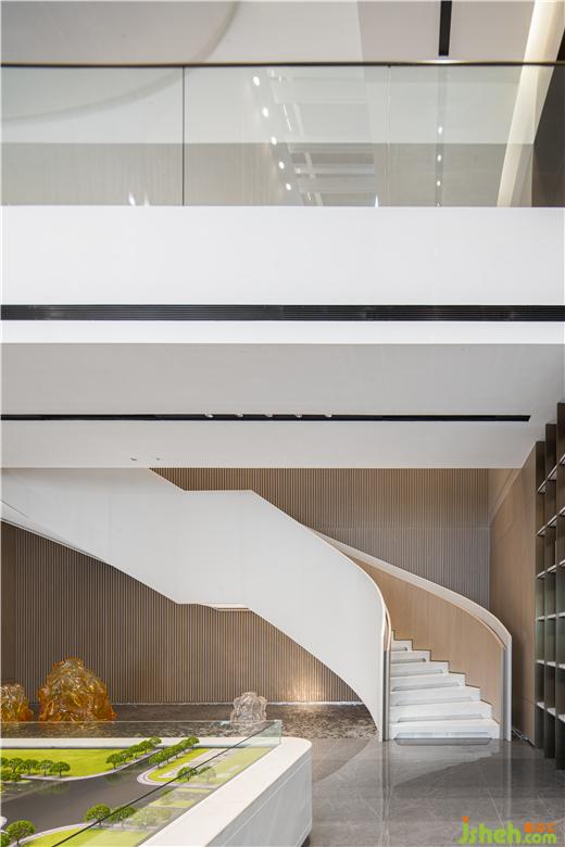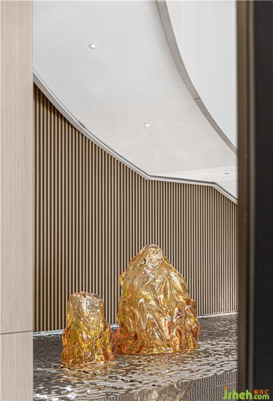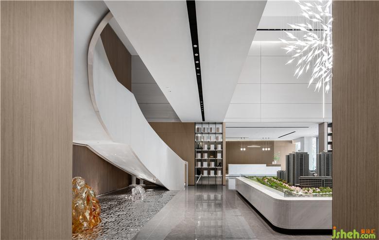 通过自然、时尚的艺术氛围,传达不一般的感受。无锡作为现代化港口城市,和船有着千丝万缕的联系,从古至今,船舶也是港口城市的代表之一, 水系纵横的自然风景纳入其中,展示中心设计通过现代的工艺手法,采用金属和玻璃,塑造出水感的全新艺术形态,大气精致,赋予了独特而考究的空间气质。