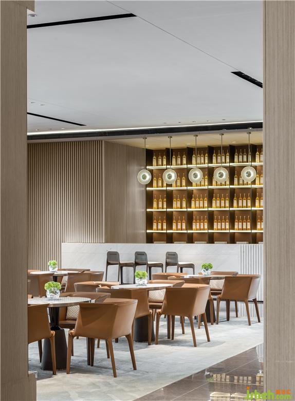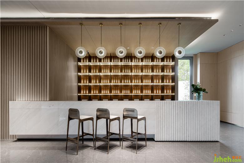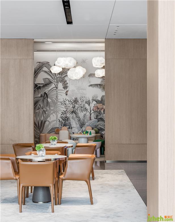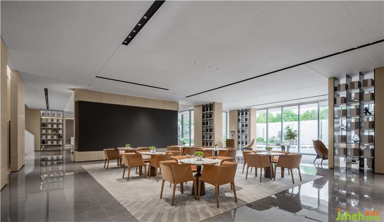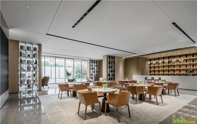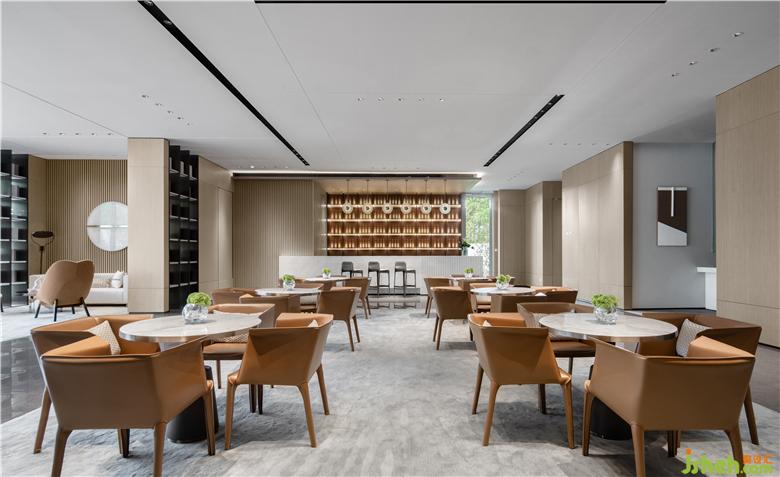 含蓄而内敛的橘色彰显出低调的氛围与品位,宁静的色调中透着从容不迫,柔软的布艺和细腻的皮革、大理石和木质、玻璃和金属、不同材质的相融合,达成柔和的微妙触感,展示中心设计提升了整体空间的品质和精致细节,从而的发挥出无限的魅力。