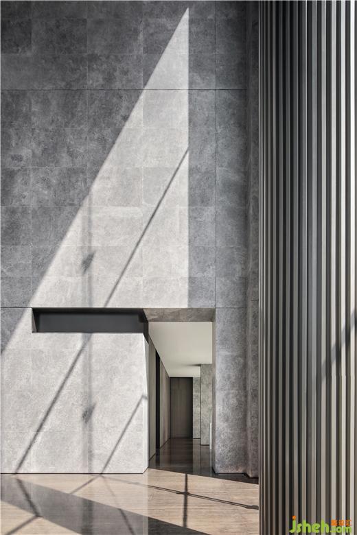 设计师从时尚秀场中受到启发,撷取了“空灵”这一微妙的元素,从中建立起新空间设计。严丝合缝的线条切割与装饰工艺使空间向两侧延伸,在门厅处就变得豁然开朗,制造出别有洞天之感。在某种意义上,它将时间转化为光芒,完全沉浸在线条、角度和明暗的变化中。