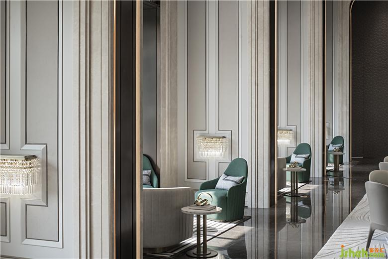 熠熠生辉的水晶吊灯,在光影流转中洒下馥郁饱满的色彩,洁净又明丽。金属装饰与大理石的组合在特定的氛围里,沉沦隐秘奢华的气息,带有微微的贵族感。