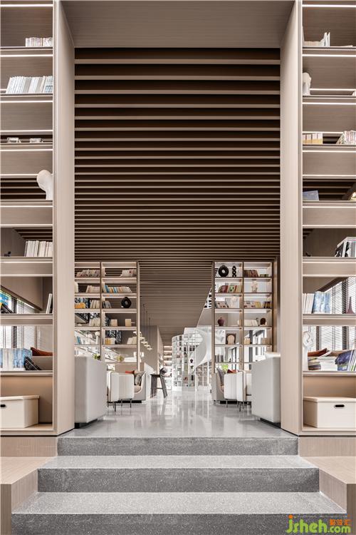 摒弃过于复杂的肌理和装饰,简化线条,纯粹的阅读空间干净而不失趣味,文创店铺设计唤起人和书之间的精神共鸣。