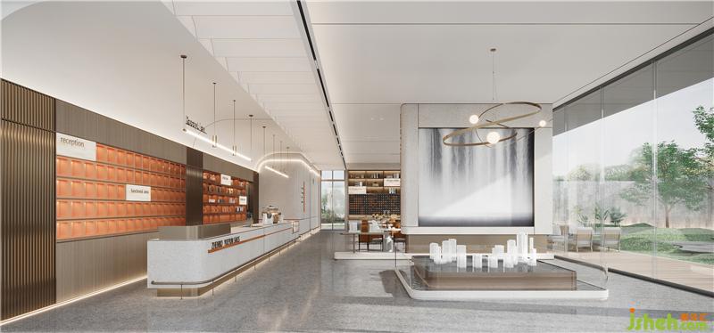 中灰色舒适沉稳,与室内陈设搭配静谧安宁,层层叠叠绿意渗透到室内,南昌售楼处设计增添了同大自然一般的清新气息。