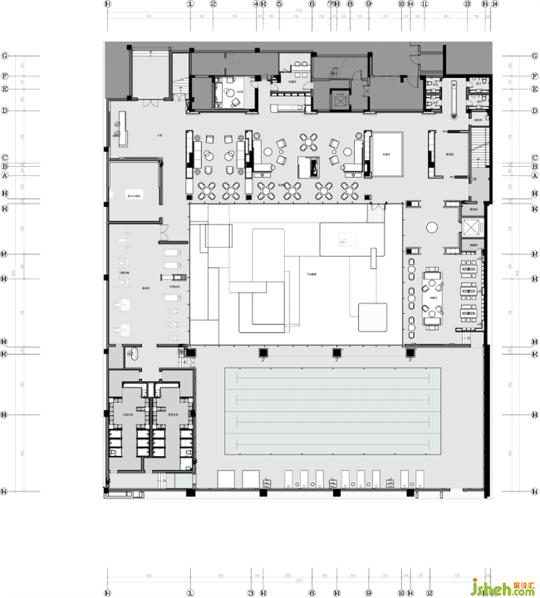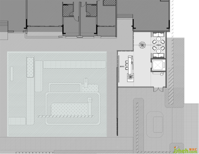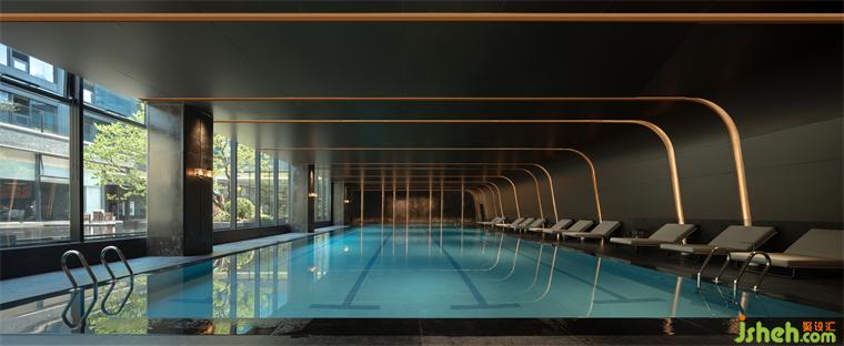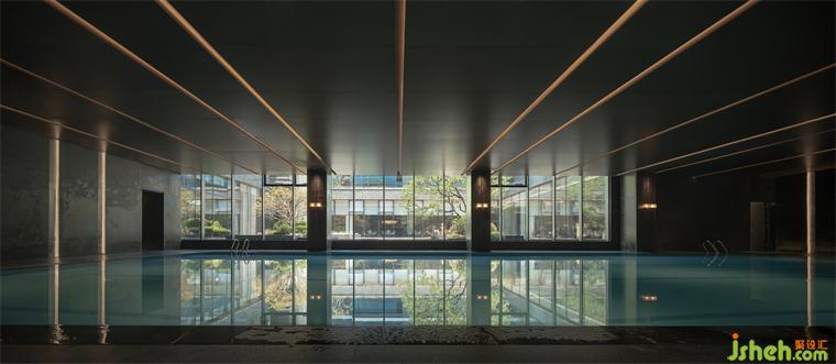 深邃的池水如镜,倒映着雅致的景致,墙顶一体的哑光铝板装饰墙为这片宁静的空间增添了几分私密与尊贵。在柔和的灯光与交织下,感受水流的轻抚,远离尘嚣。
