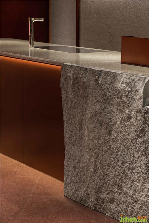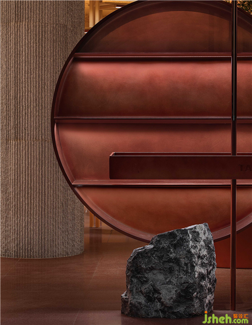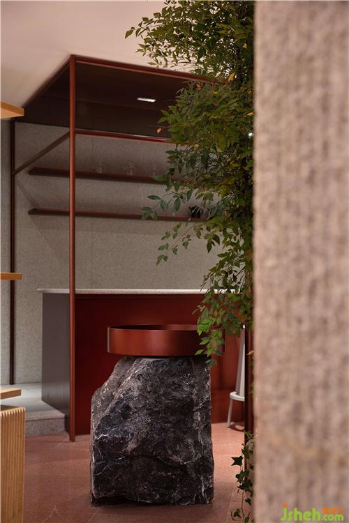 空间中大面积使用自然透气的红色泥土,配合细腻温润的红铜,点缀天然朴质的原木,彻底摒弃装饰与华丽,呈现高度真实且单纯的自然之美。