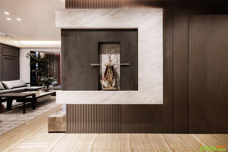 入门精装房改造便是齐天大圣的雕塑,作为整个家的精装房改造主题,因业主生肖为此,彰显空间精装房改造的个性。