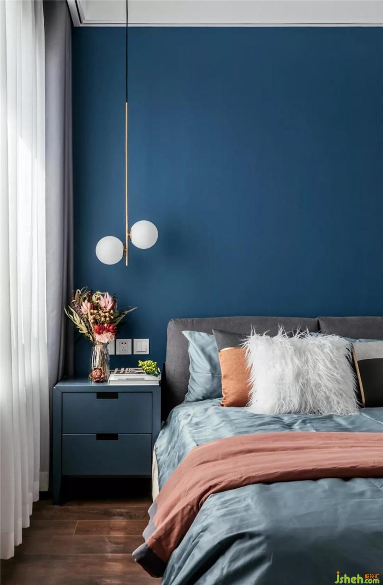 蓝色为基调的客卧室,清晨第一缕阳光透过纯白的纱帘铺满柔软的床,娇艳的鲜花香气萦绕于鼻尖,浪漫而惬意。