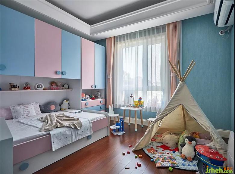 ▲儿童房色彩鲜明活泼,温馨而梦幻,既是孩子的美梦空间,又是玩乐的小天地。