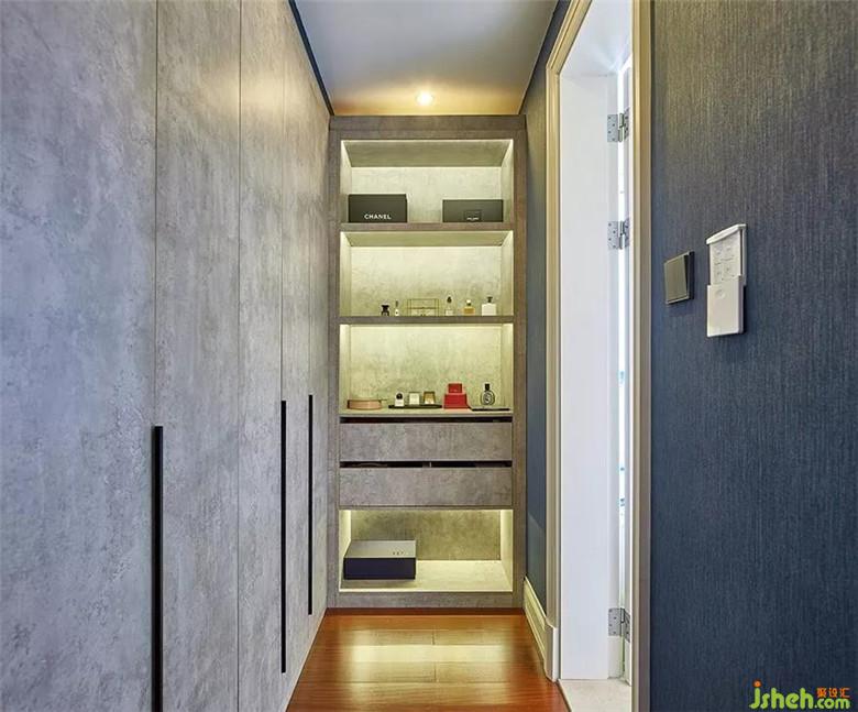 ▲步入式衣帽间是主人的一处私密的收纳空间,不需要过于繁琐的造型装饰。落地通顶的衣物柜,超大而类别分明的储物空间,充分地满足了主人对有序收纳的需求。