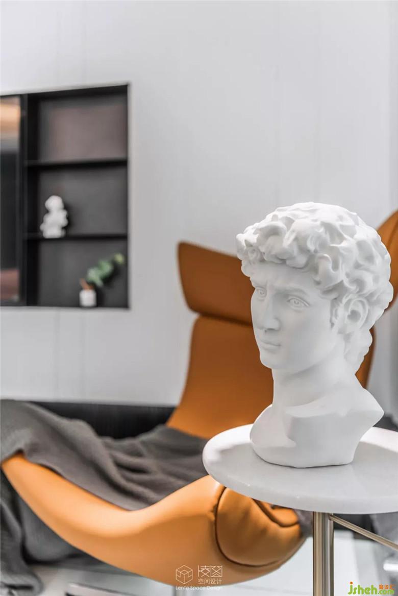 两侧柜体的中间,内嵌一组实用的沙发床,平日主人可以在这里读书喝咖啡,偶尔有客人留宿时,也可轻松拓展出卧室的功能。