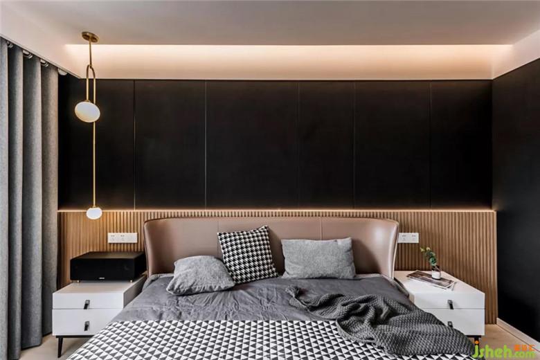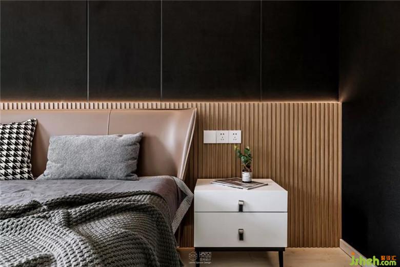 主卧室定制了一整面墙的衣柜,极大限度地实现了日常生活的收纳功能。
