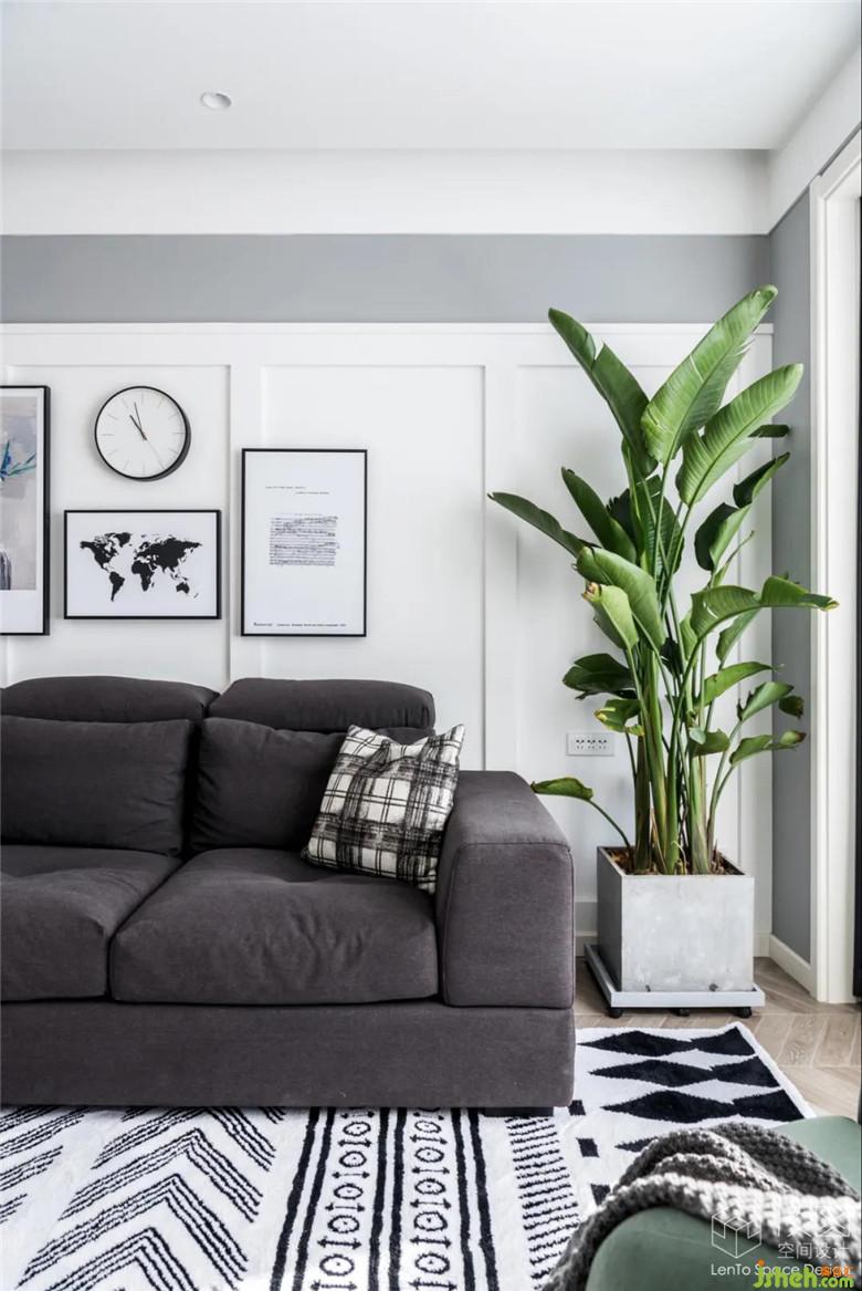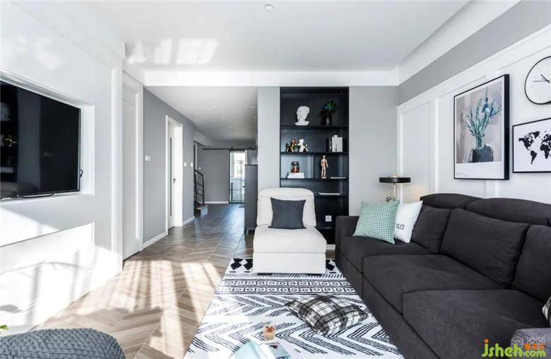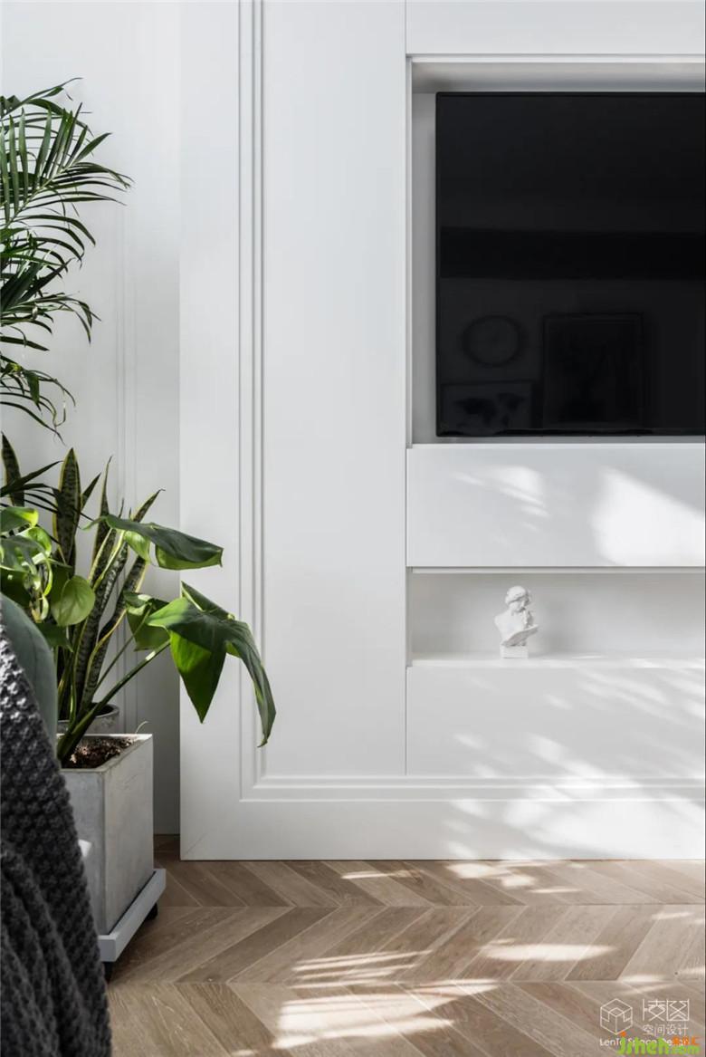 客厅的墙面整体装修公司以白色为主色调,配以柔和的浅灰色,在小城漫长而漆黑的凛冬里,使得整个空间保持视野开阔,色彩统一均匀而明亮。