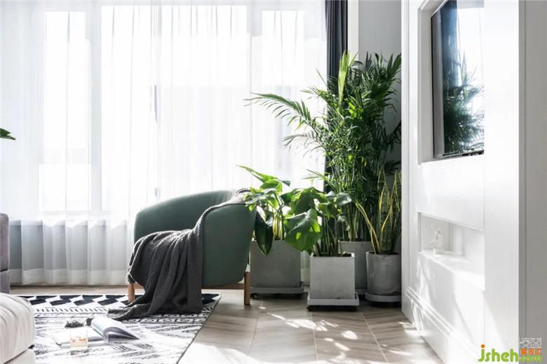 宽敞的大窗在一定程度上彰显了充足的日照优势,而装修公司设计师在窗帘的选择上,以大幅半透明的白色纱帘,让影影绰绰的光线尽可能多地洒落进室内。、
