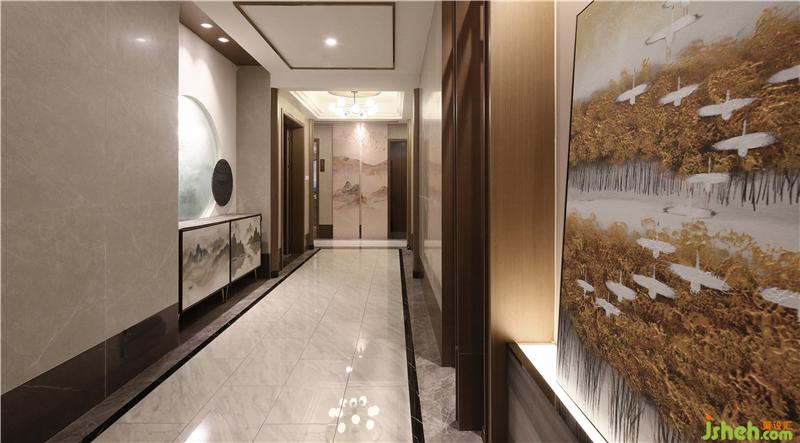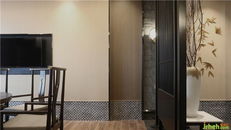 走廊作为连通各个主体房间的过渡区域,取其简约岭南文化作为主要基调来作为定调基础,为一房一品的和谐过渡起到的包容性作用。