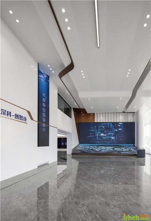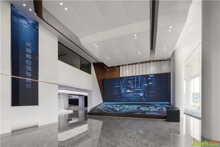 一层是接待大堂,在大堂右侧是一副大型的L型屏电子沙盘,