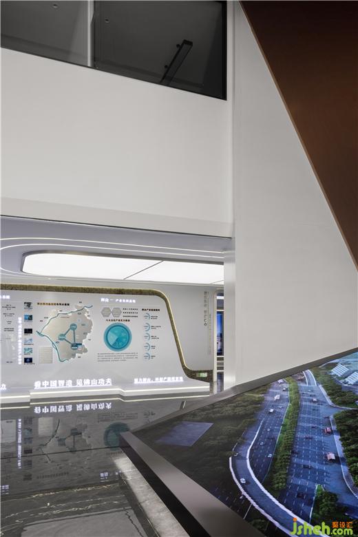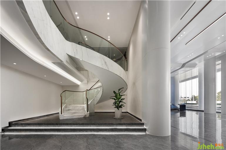 通过夹层走廊结构及天花立面造型在方正的空间里塑造出流动的曲线。