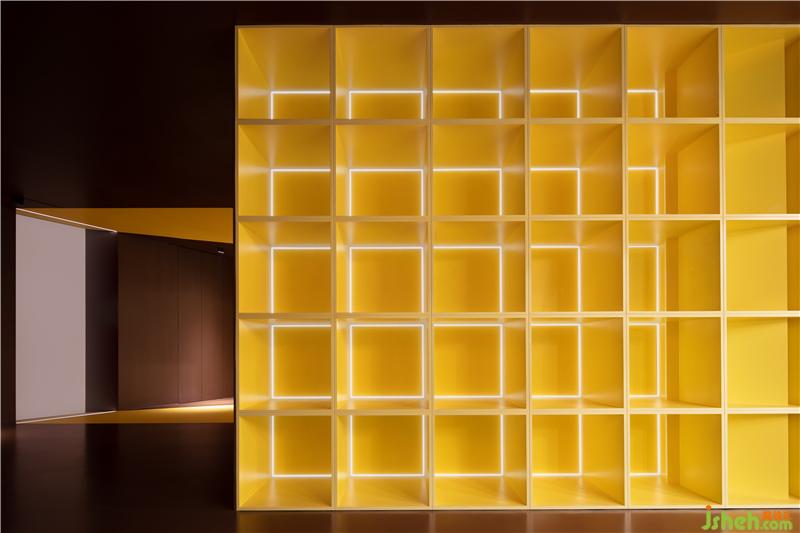 光是点燃空间的灵魂,光是灵动多变的魔法,一整面大方格盒,被光的照射角度切割成大小不一的小格。营造出明暗层次、虚实对比的视觉感,在丰富空间语境的同时,更清晰勾画和聚焦出主体的轮廓。装修设计
