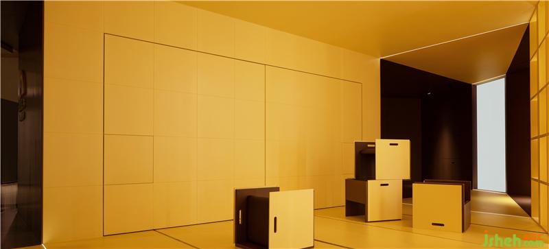 Light ignites space with magic. A wall with the outline of a large square is divided into grids of different sizes by the angle of light rays. It creates a visual sense of light and dark, virtual and real, while at the same time enriching the space and clarifying the theme.