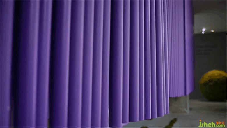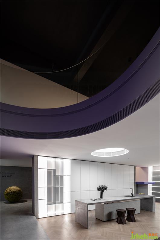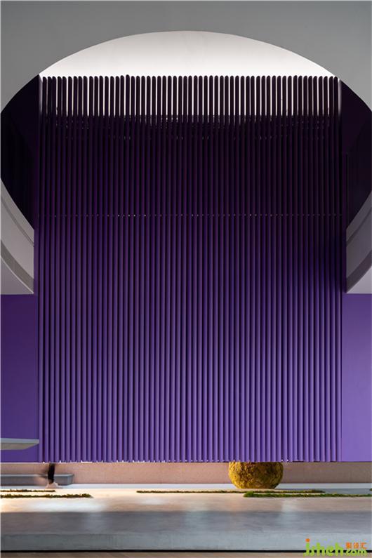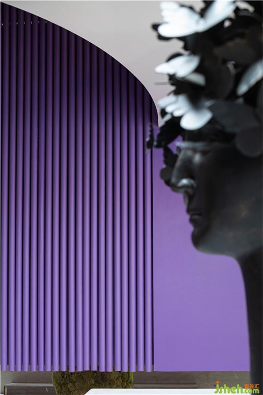 因为这片紫色的屏风,软装馆得以在商场中有了相对的“私密性”,其中的沟通、创意、会谈,有了不被打扰的可能。色彩是运动独立的态度,运动是色彩保持清醒的自知。展厅设计伴随着音乐律动,也可以感应人流变换舞动的节奏和频率。当二者互为联系,即刻产生新的派系,形成自由呼吸的新有机体。
