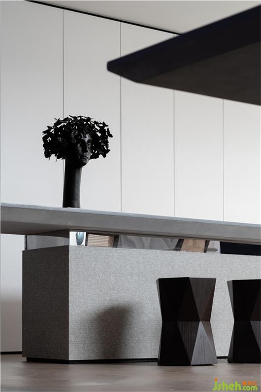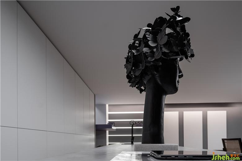 一层的入口处,我们希望映入眼帘的是一个艺术馆,而非传统销售展厅,左侧作为设计部,右侧则是洽谈区和出库、入库的场所。因它有独立的生命,它想要的是彼此双向的奔赴。被它的舞动吸引而来的人们,可以看到它的专业性。动线的展厅设计使顾客可以观看到完整的制作流程再回到洽谈区域。当空间大且至简时,每一处陈设细节,都成为率性的魅力点与视线停留的关键点,呼唤你继续探索的欲望。