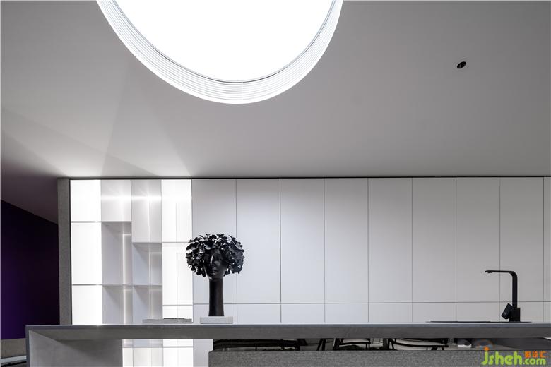 展厅设计以阶段引导动线,交错的线条产生即视的立体层次效果。视野与光线随步延伸,创造出独特的光效果与神秘的纵深度,顺势探秘新的互动体验。