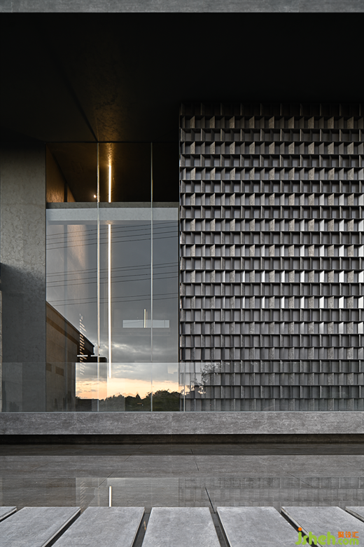 由品牌与设计师联合出品的“璞“”系列砖应用,展厅设计通过模块化的组合模式运用于门头设计中,结合LED灯与机械装置的使用,构成图像语言,配合着展厅内部的活动展陈进行播放展示,使展厅内外产生联动,以视野的格局加深品牌印象的传达。