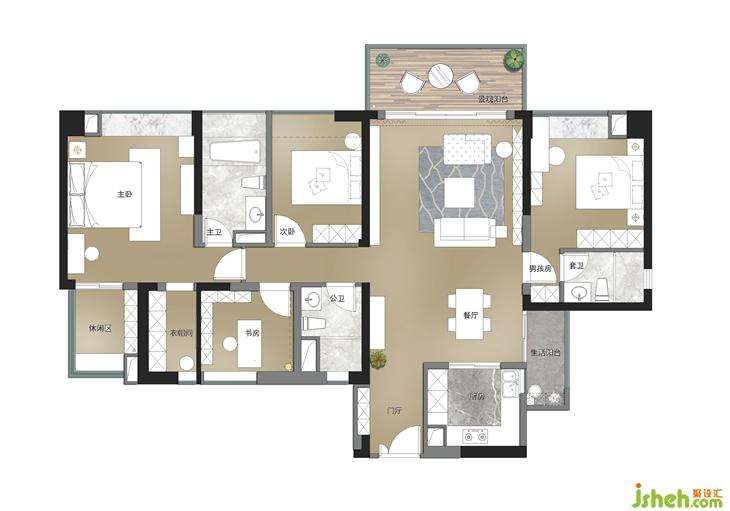 说起简约的家居设计,我们似乎很难逃离木材的应用,这个中国传统里最优质的建筑与家居材质,以其经典的纹理与温暖的质感,越来越受中产人群的喜爱。胡桃木深邃细密的花纹,能给人一种质朴又大方的感觉。本次设计就大量采用了胡桃木的家居材质。