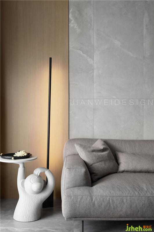 黑白灰是永恒的经典,作为低调轻奢的经典搭配,其简约内敛的色调搭配原木色带来的温暖质感,仿佛沉浸在秋高气爽时节的一抹阳光。带着一丝温暖的同时,让人感觉无比的惬意。不同层级灰色大理石的墙面和地面,更带来经典的空间层次感。在灯光的排布上,全屋都没有一枚主灯,设计师采用不同流明的灯光设计,和谐的让空间里的光源融为一体,营造出空间的整体感和品质感,而要真正感受这种设计的魅力,可能只有业主自己在太阳落山之后,才能独自去静静欣赏了。装修设计