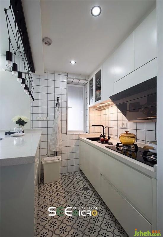 厨房设计得干净利落,打掉墙体以后开放式吧台不仅变身餐厅,还成为小厨房的大大操作台,多功能导向更实用。