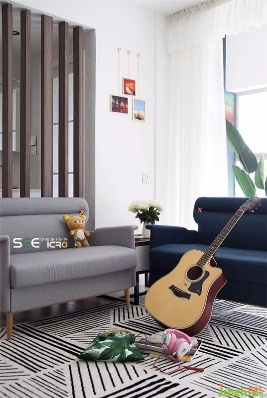 通透大气的木栅栏,舒适柔软的沙发,席地而坐的弹唱,微微绽放的白玫瑰——构成了文艺小情侣宅家的日常,一屋,两人,三餐,四季。装修设计