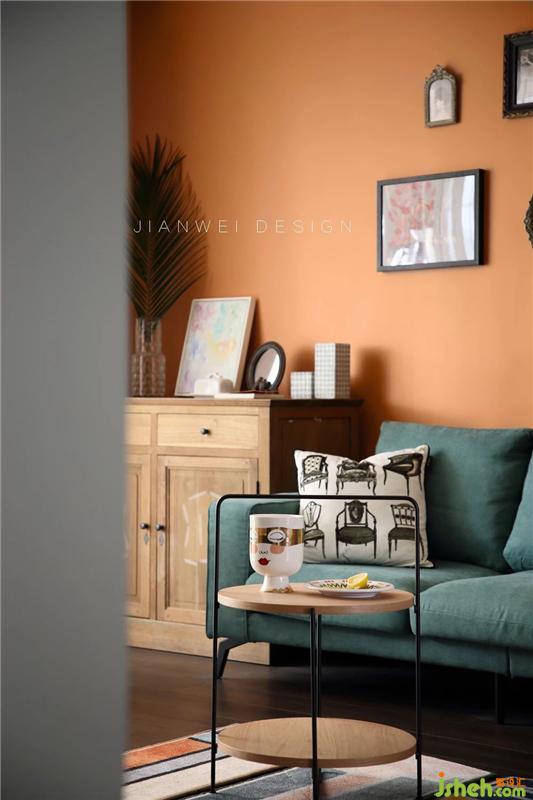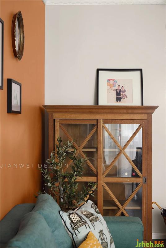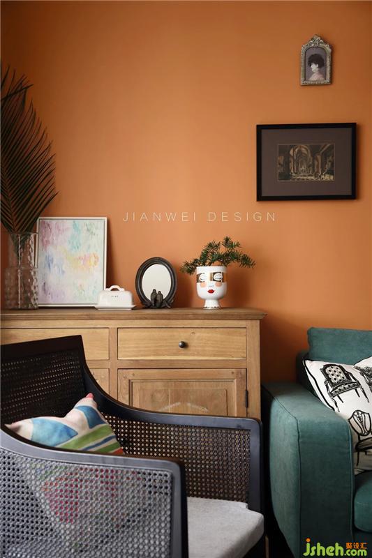 值得一提的是2组收纳柜,非常的有质感,有特色,收纳柜上放了干花和其他的装饰,小小的角落也装扮的格外的精致舒适。也能为客厅提供强大的收纳空间。